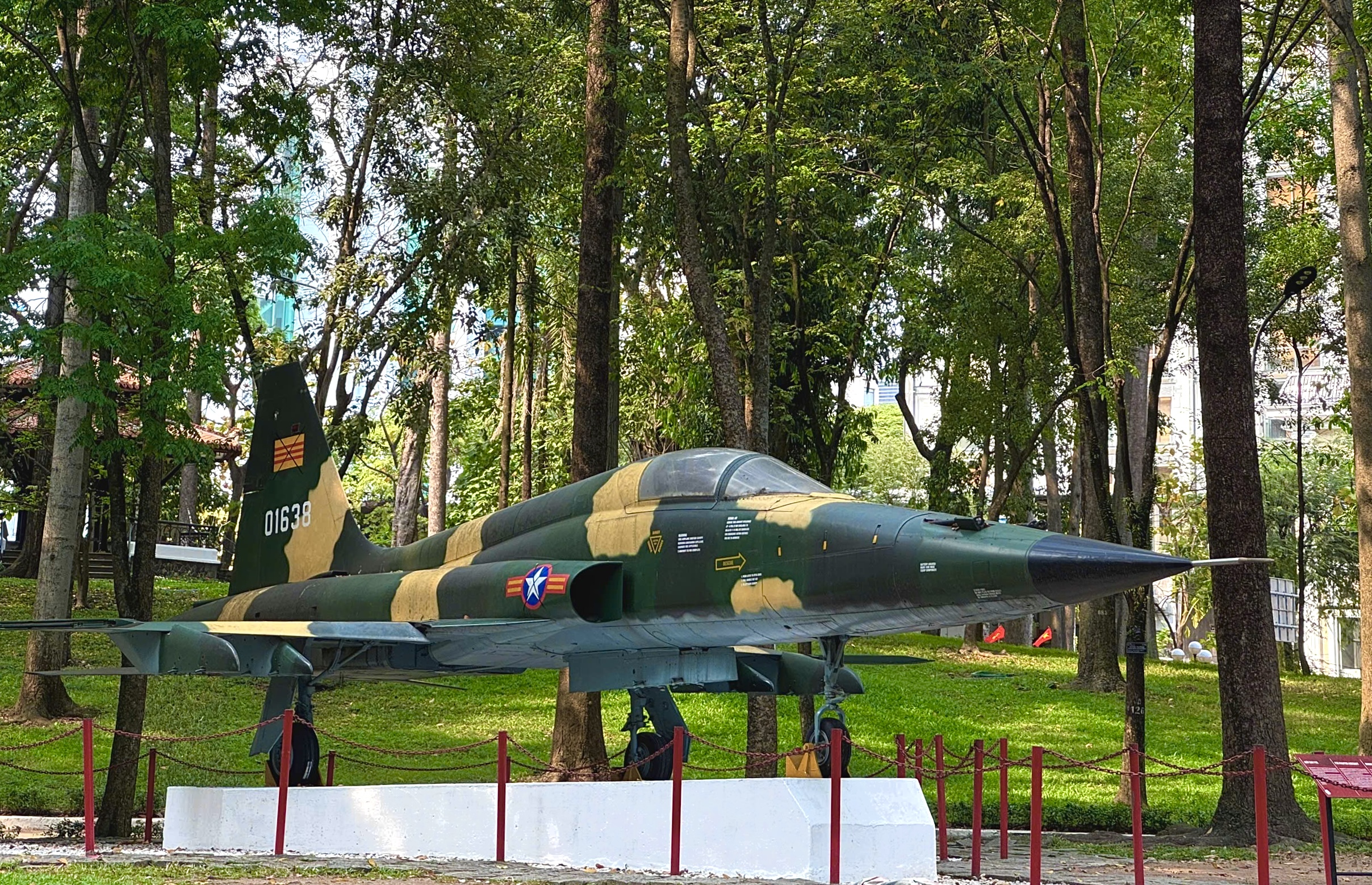 Hình 4: Máy bay F-5E trong khuôn viên Dinh Độc Lập – hiện vật đồng dạng với chiếc máy bay do Trung úy phi công Nguyễn Thành Trung sử dụng trong cuộc ném bom Dinh Độc Lập ngày 08/04/1975.