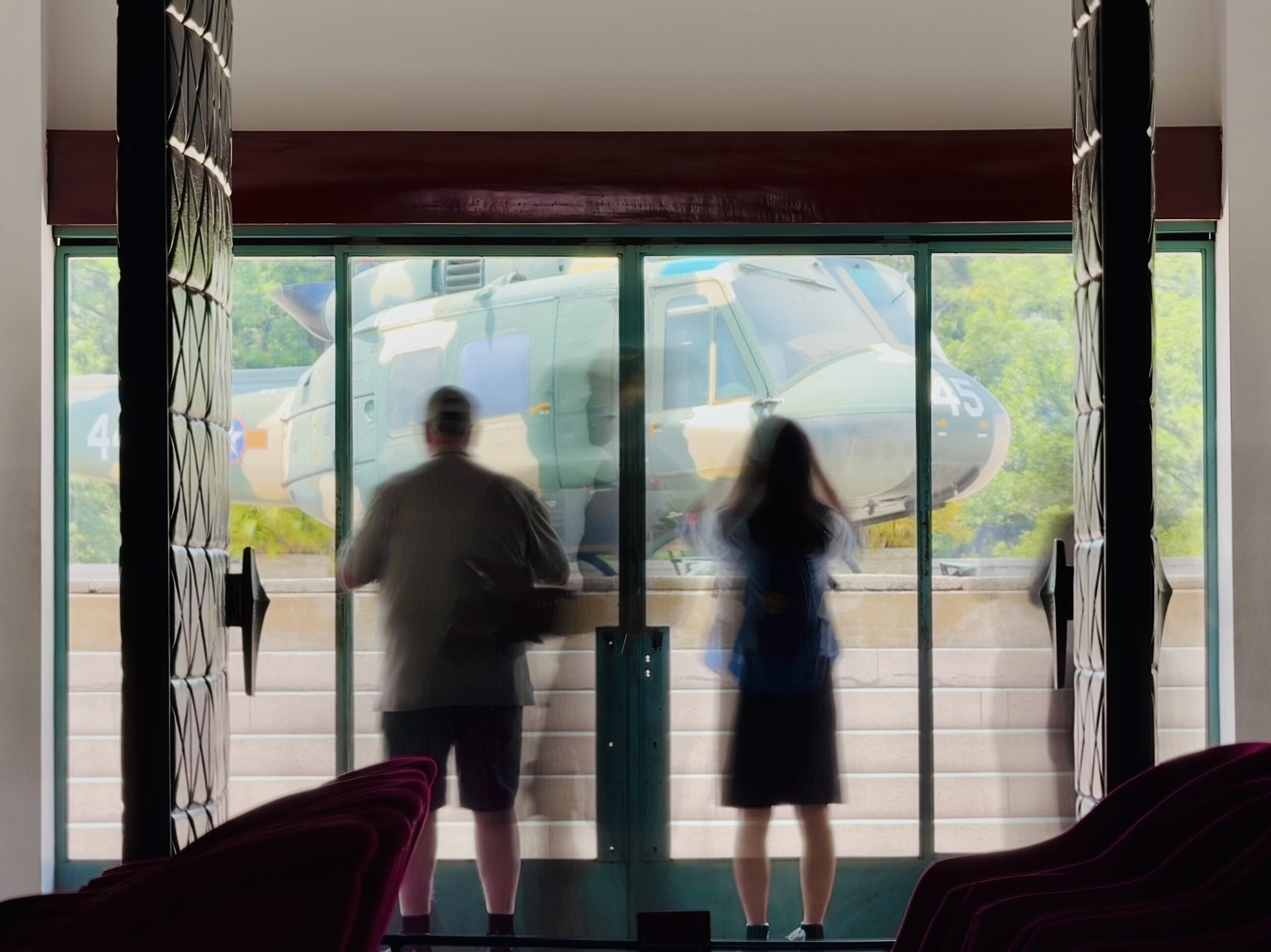 Hình 3: Du khách chụp ảnh máy bay trực thăng UH-1 từ Tầng 3