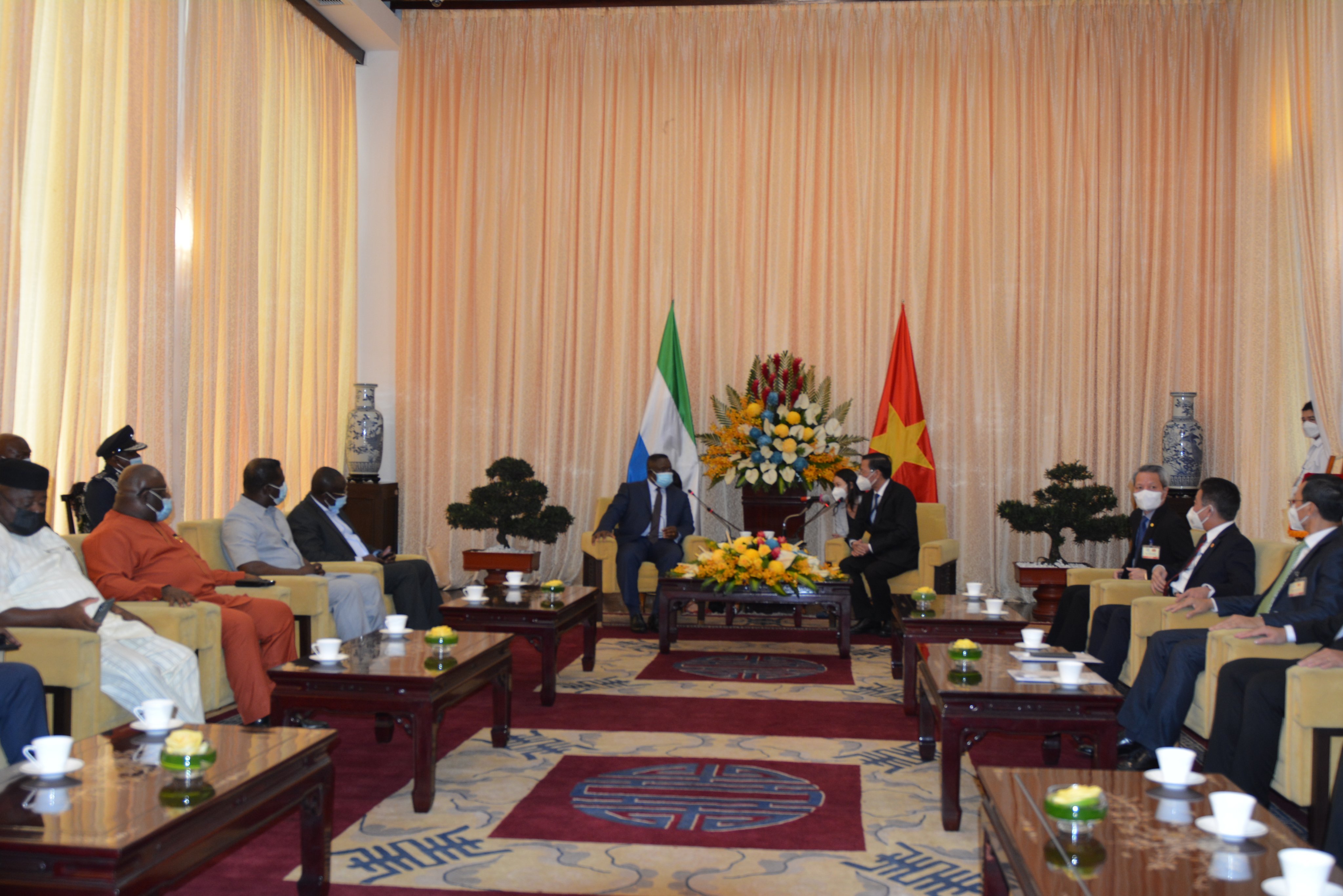On the afternoon of March 19, 2022, at the Yellow Chamber, Unification Hall, President of the Republic of Sierra Leone Julius Maada Bio was received and hosted a banquet by a member of the Party Central Committee, Chairman of the HCMC People’s Committee Phan Van Mai, during his visit to Vietnam. Link: https://thanhuytphcm.vn/tin-tuc/chu-tich-ubnd-tphcm-phan-van-mai-tiep-tong-thong-nuoc-cong-hoa-sierra-leone-1491891844 Overview of the reception at Unification Hall Banquet at the Conference hall