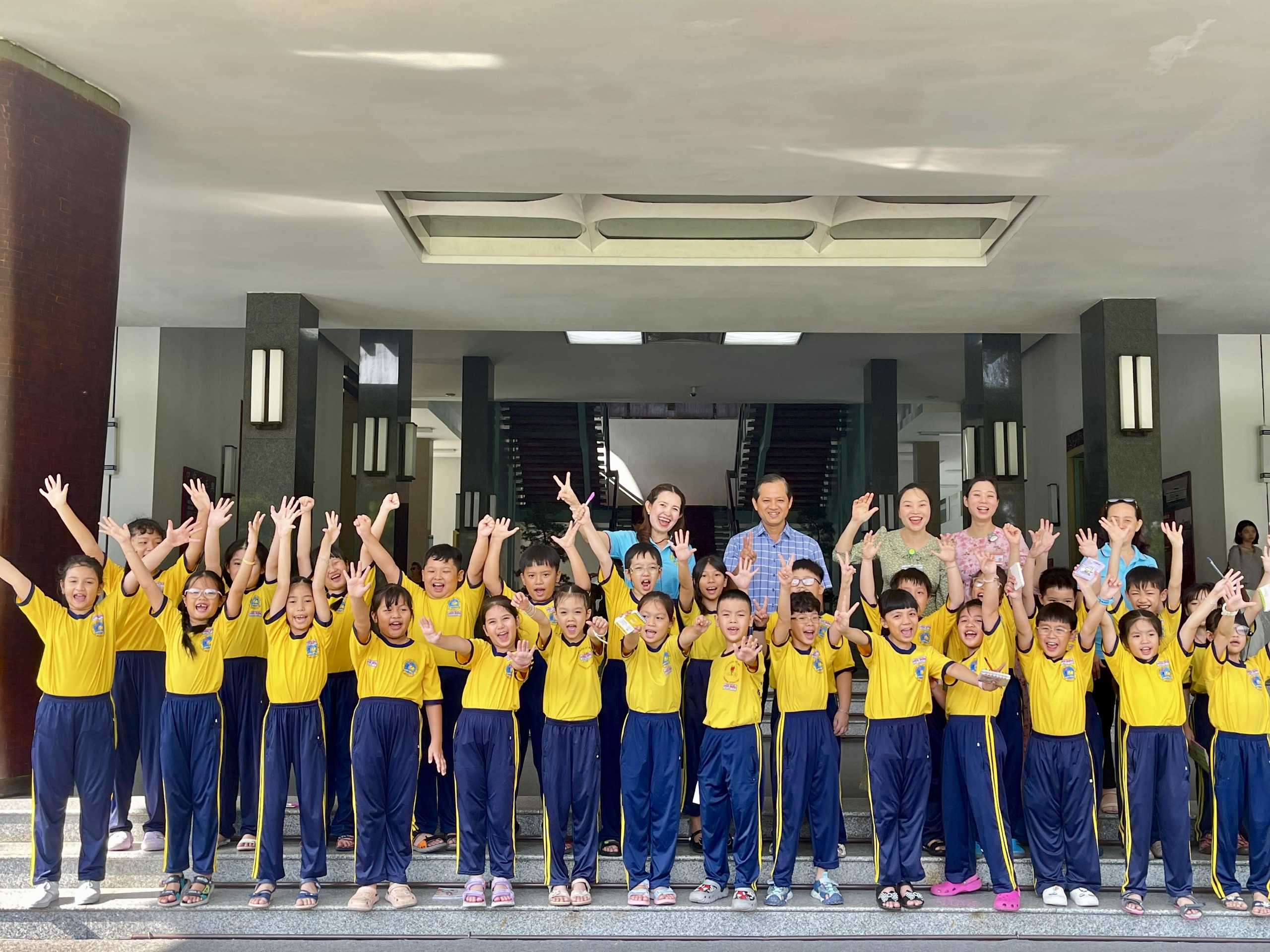 The educational staff introduces the children with the dragon motifs found in the Independence Palace