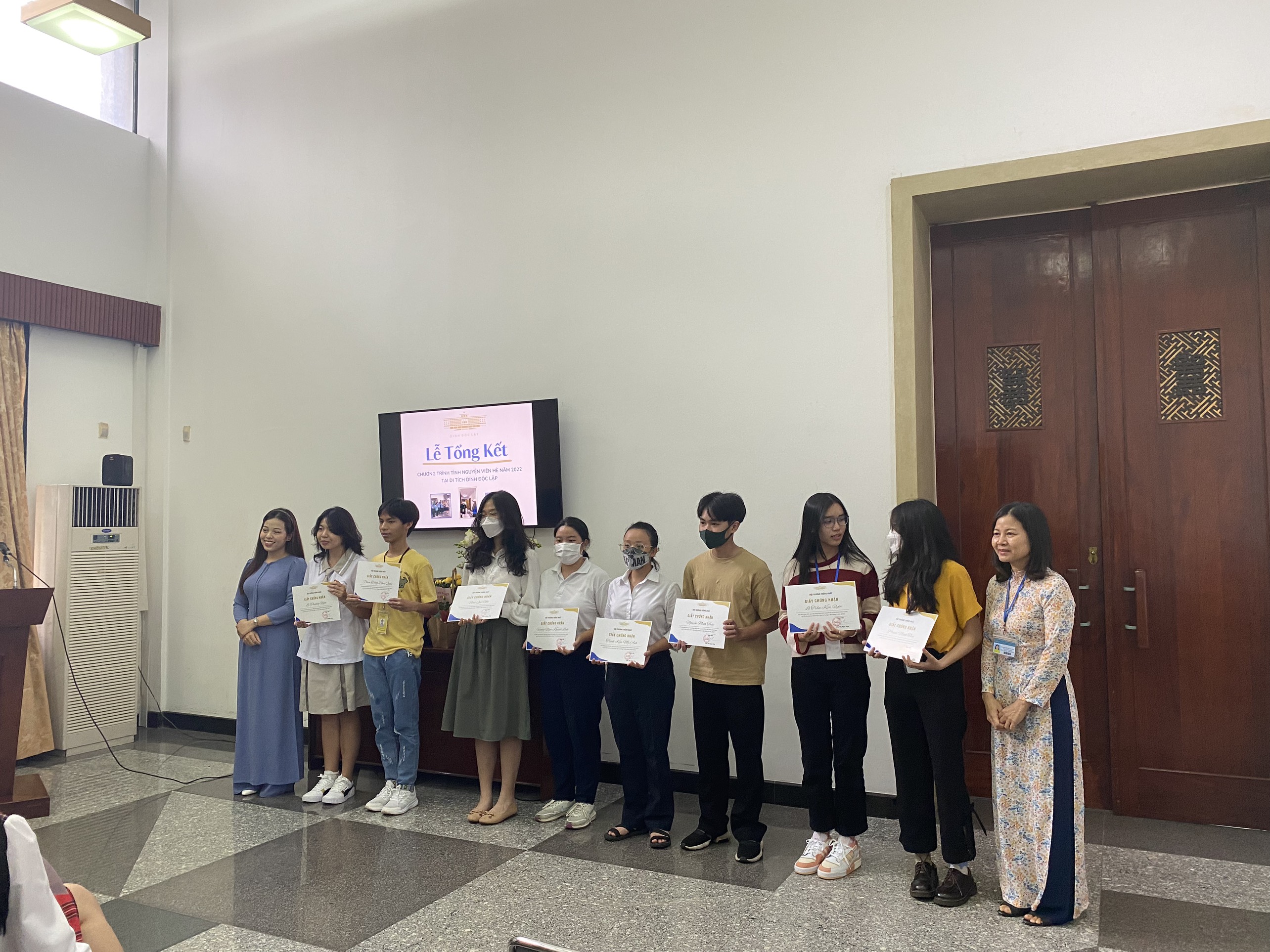 On the afternoon of August 31, 2022, at the 1st floor, Reunification Hall the closing ceremony of the summer 2022 volunteer program at the Independence Palace historical relic was held. Certificates for Excellent Volunteers were offered to nearly 40 pupils from high schools in Ho Chi Minh City.