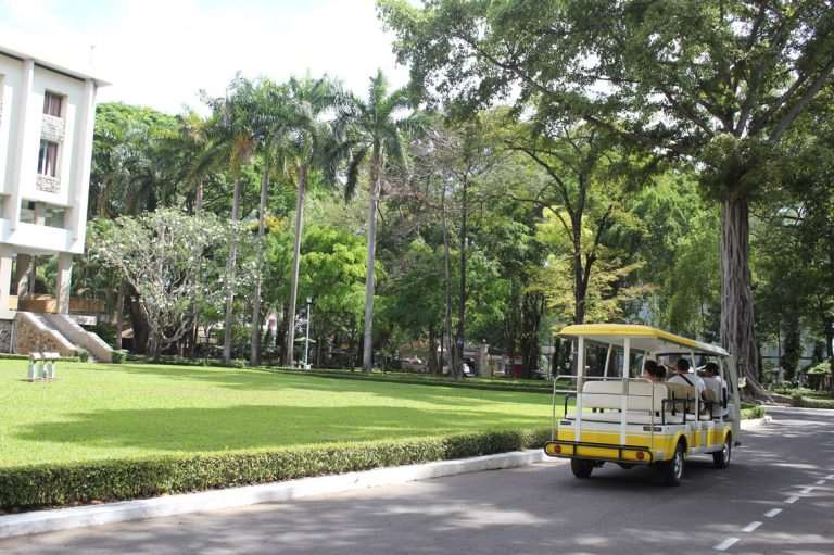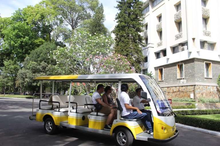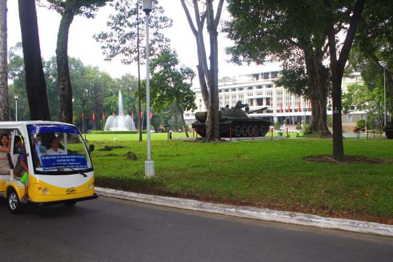 Today, visiting Independence Palace, visitors will be able to experience electric cars which are modern equipment, friendly for the environment. They pick visitors up at the entrance. Visitors can contemplate the large garden without inhibition, as well as understand the prominent features and historical values of the relic from the audio guide that has been integrated in the electric cars.
