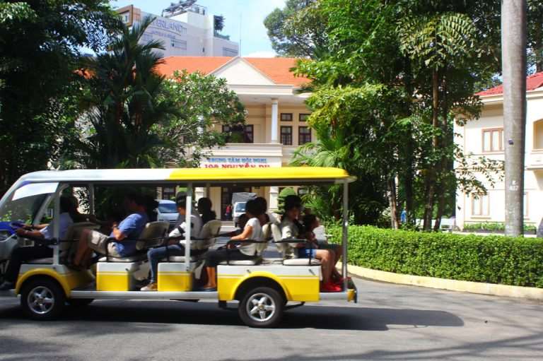 Taking a tour on electric car brings convenience to families or groups while feeling safe and comfortable when they commune with nature to study the beauty of traditional culture and history of the city.