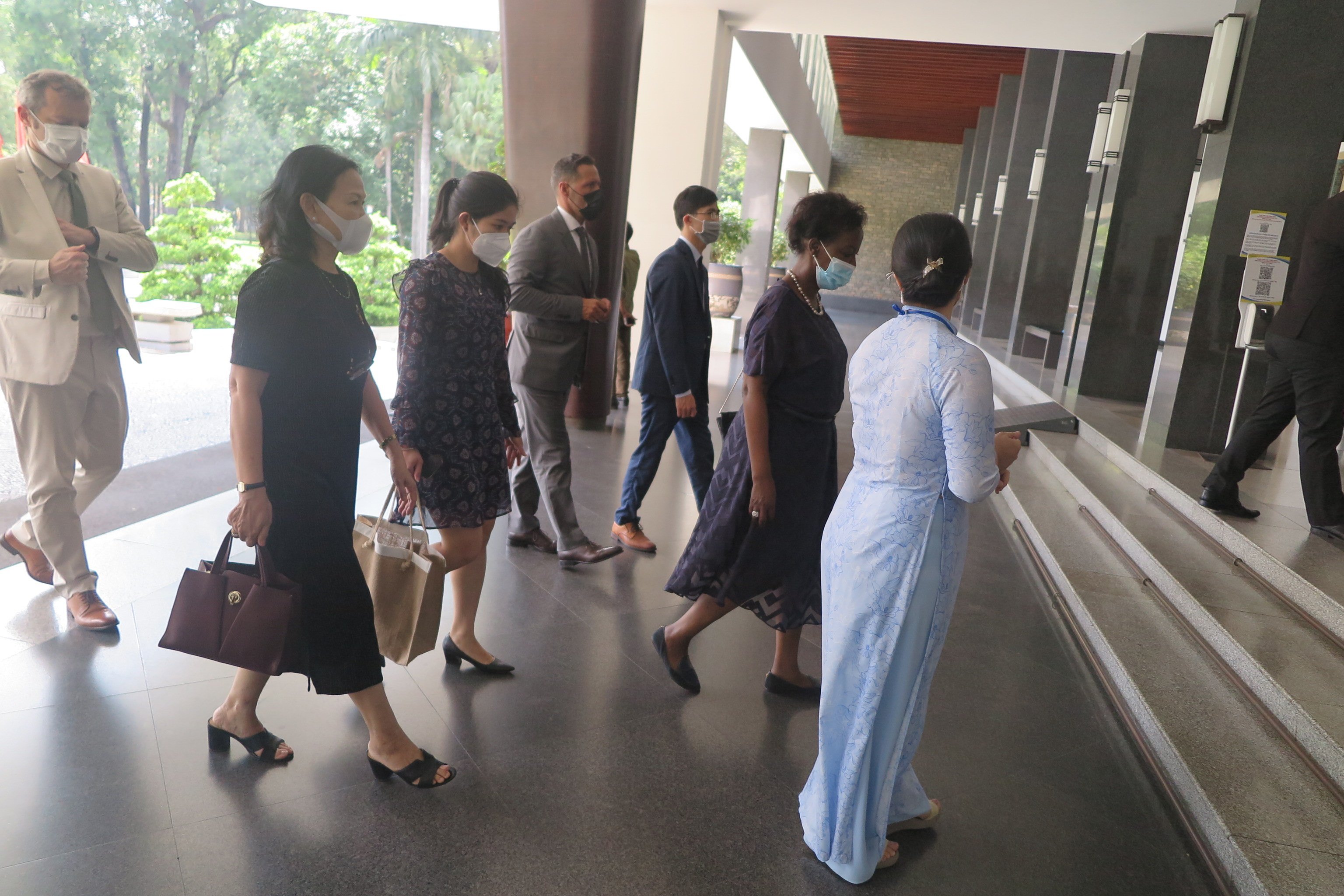Sáng ngày 23/3/2022, nhân chuyến thăm và làm việc tại TPHCM, đoàn Tổng thư ký Tổ chức Quốc tế Pháp ngữ, do bà Louise Mushikiwabo dẫn đầu đã đến tham quan Di tích lịch sử Dinh Độc Lập.