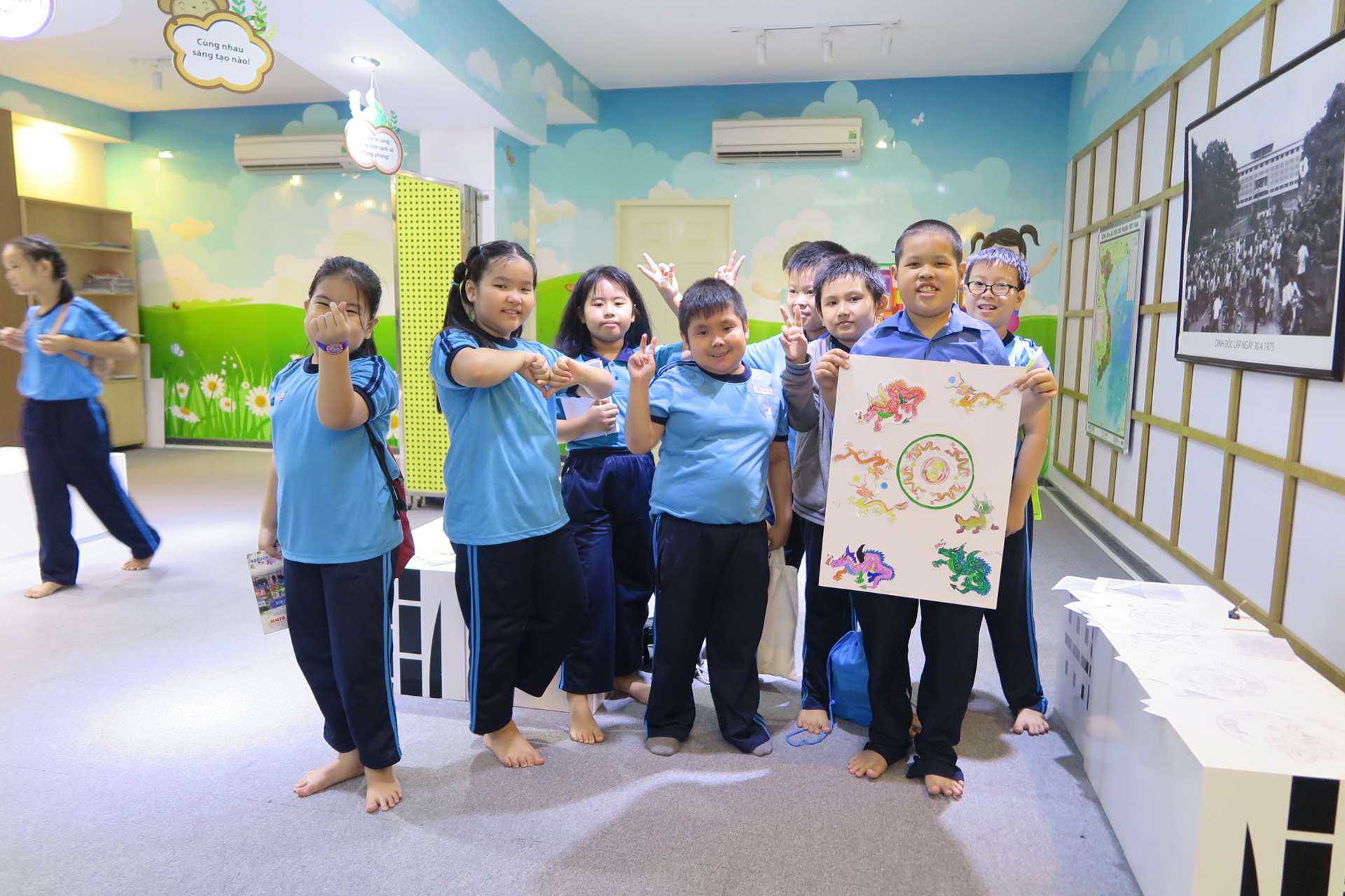 Ngày 18, 19 và 21/3/2019, hơn 150 học sinh khối Lớp 2 trường Tiểu học Hòa Bình, Quận 1, thành phố Hồ Chí Minh đã đến tham gia buổi học ngoại khóa tìm hiểu về họa tiết “con rồng” được trang trí trên các hiện vật trong Di tích lịch sử Dinh Độc Lập. Đây là một trong những nội dung sinh hoạt tại Câu lạc bộ trẻ em của Di tích.