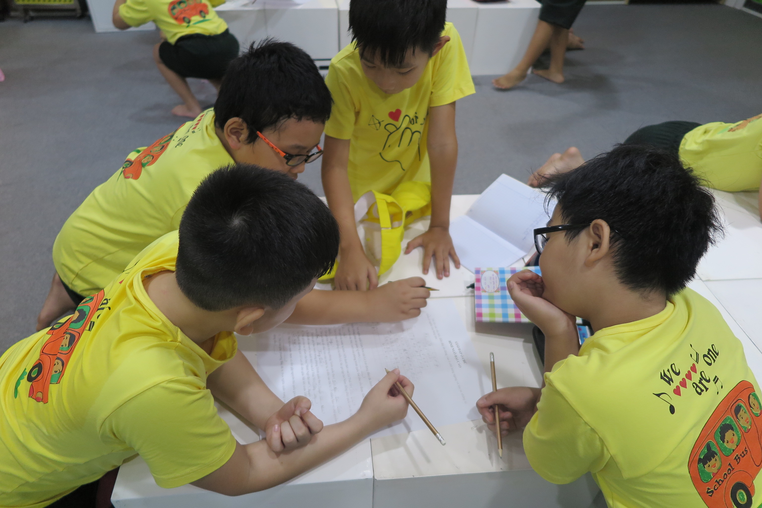 Từng nhóm thảo luận và thuyết trình tại phòng Câu lạc bộ trẻ em, tầng trệt