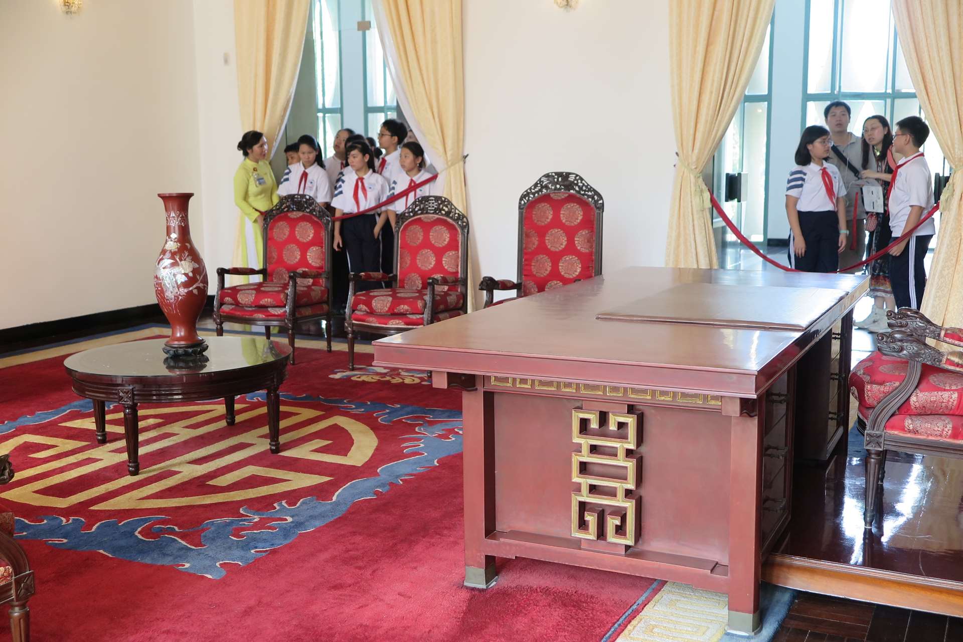Ngày 11, 13 và 15/3/2019, tại Câu lạc bộ trẻ em, Hội trường Thống Nhất, hơn 150 học sinh khối lớp 6 trường THCS Nguyễn Du, Quận 1, thành phố Hồ Chí Minh đã đến tham gia buổi học ngoại khóa tìm hiểu về họa tiết chữ “Thọ” trang trí trong di tích lịch sử Dinh Độc Lập.