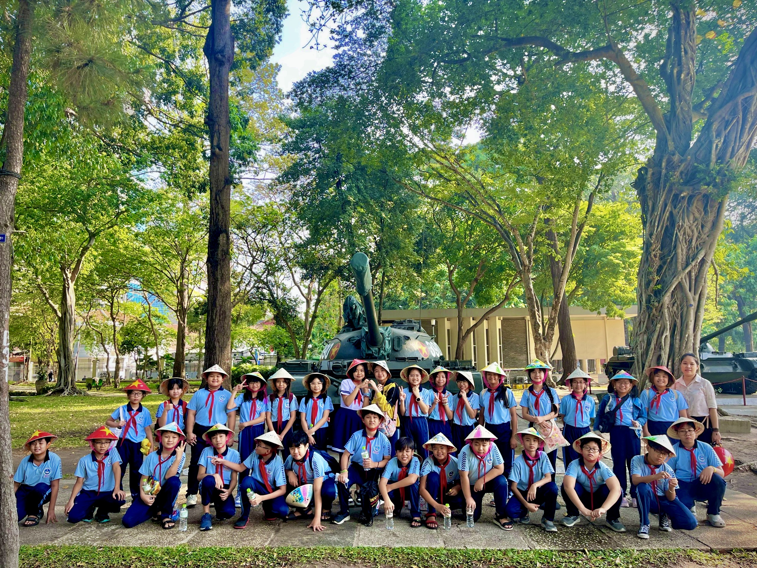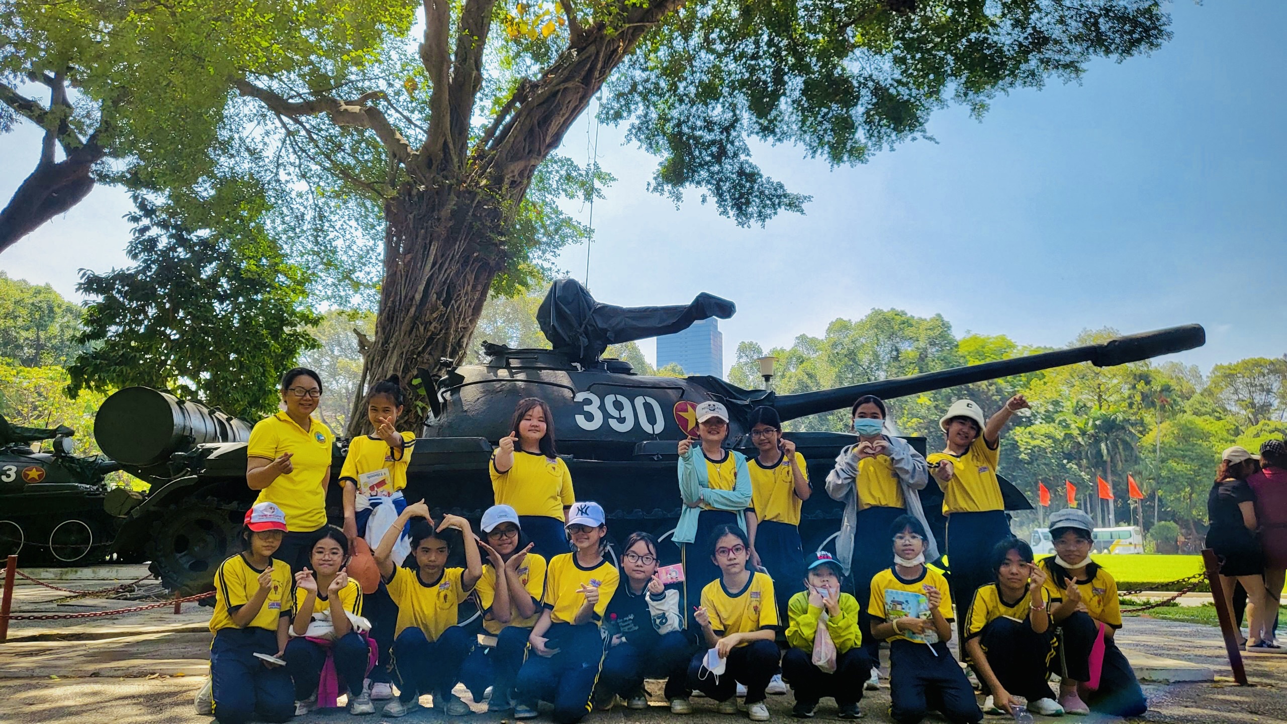 Từ ngày 29 đến 31/3/2023, học sinh khối lớp 5 của trường Tiểu học Khai Minh Quận 1 đã tham gia chương trình giáo dục “Khám phá di sản” với chủ đề “Thống nhất đất nước” tại Di tích lịch sử Dinh Độc Lập. Mỗi buổi học kéo dài 90 phút bao gồm các hoạt động vui chơi vẽ tranh, giải câu hỏi liên quan đến câu chuyện lịch sử ngày 30/4/1975. Thêm vào đó, các bạn còn được đội ngũ hướng dẫn viên giới thiệu về 2 hiện vật xe tăng 390 và 843 tại sân vườn của Dinh....