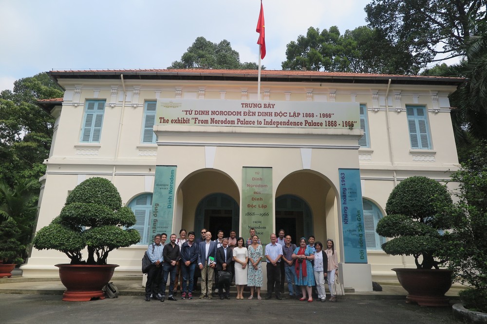Nhân chuyến công tác tại TPHCM, ngày 13/9/2022, các giáo sư của Đại học Fulbright Việt Nam và Đại học Leeds (London, Anh Quốc) đã đến tham quan Di tích Lịch sử Dinh Độc Lập và trưng bày “Từ Dinh Norodom đến Dinh Độc Lập 1868-1966”. Một số hình ảnh của đoàn tham quan Trưng bày “Từ Dinh Norodom đến Dinh Độc Lập 1868-1966” Thuyết minh viên hướng dẫn đoàn tham quan Di tích Lịch sử Dinh Độc Lập
