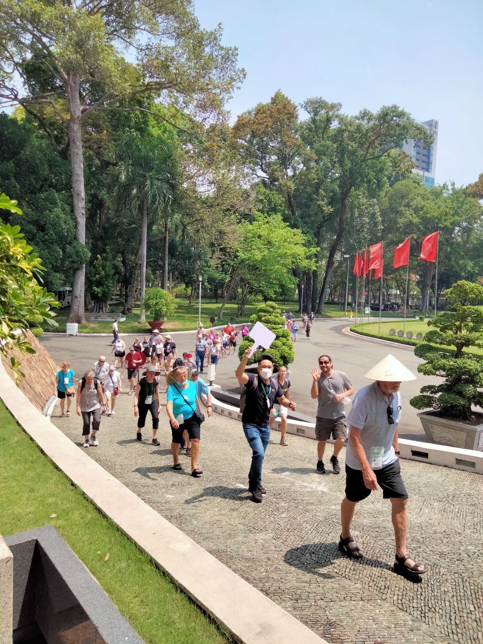 Trong hành trình xuyên Việt 10 ngày, đoàn du khách Mỹ đã đến tham quan Di tích lịch sử Dinh Độc Lập, sáng ngày 8/4/2022. Chương trình do Công ty Vẻ đẹp Châu Á phối hợp với Tập đoàn Du lịch và Lữ hành Citslinc tổ chức. Chuyến tham quan của đoàn cũng là hoạt động trong chiến dịch truyền thông lớn nhất của ngành du lịch TP.HCM, kể từ khi đại dịch COVID-19 xảy ra: “TP.HCM chào đón bạn – Welcome to Ho Chi Minh City”. Hình ảnh đoàn tham quan tại Di tích lịch sử Dinh Độc Lập