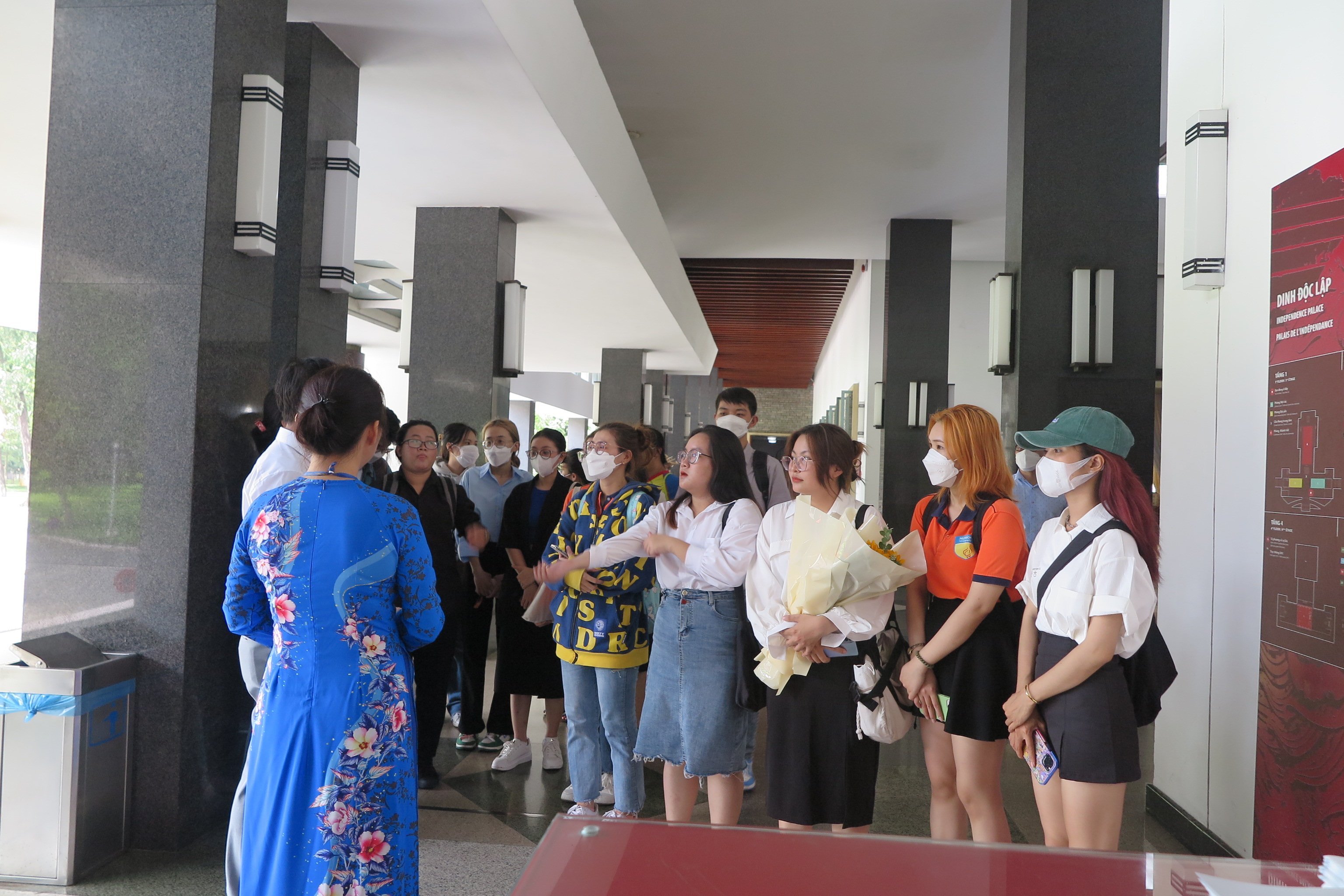 Chiều ngày 29/6/2022, tại Di tích Lịch sử Dinh Độc Lập, nhóm sinh viên ngành Việt Nam học, trường Đại học Công nghệ TPHCM (HUTECH), do Thạc sĩ Vũ Nhật Tân, giảng viên phụ trách, đã đến giao lưu và tìm hiểu về công tác thuyết minh của di tích. Đại diện phòng Nghiệp vụ thuyết minh tiếp đón và trao đổi kinh nghiệm với các sinh viên