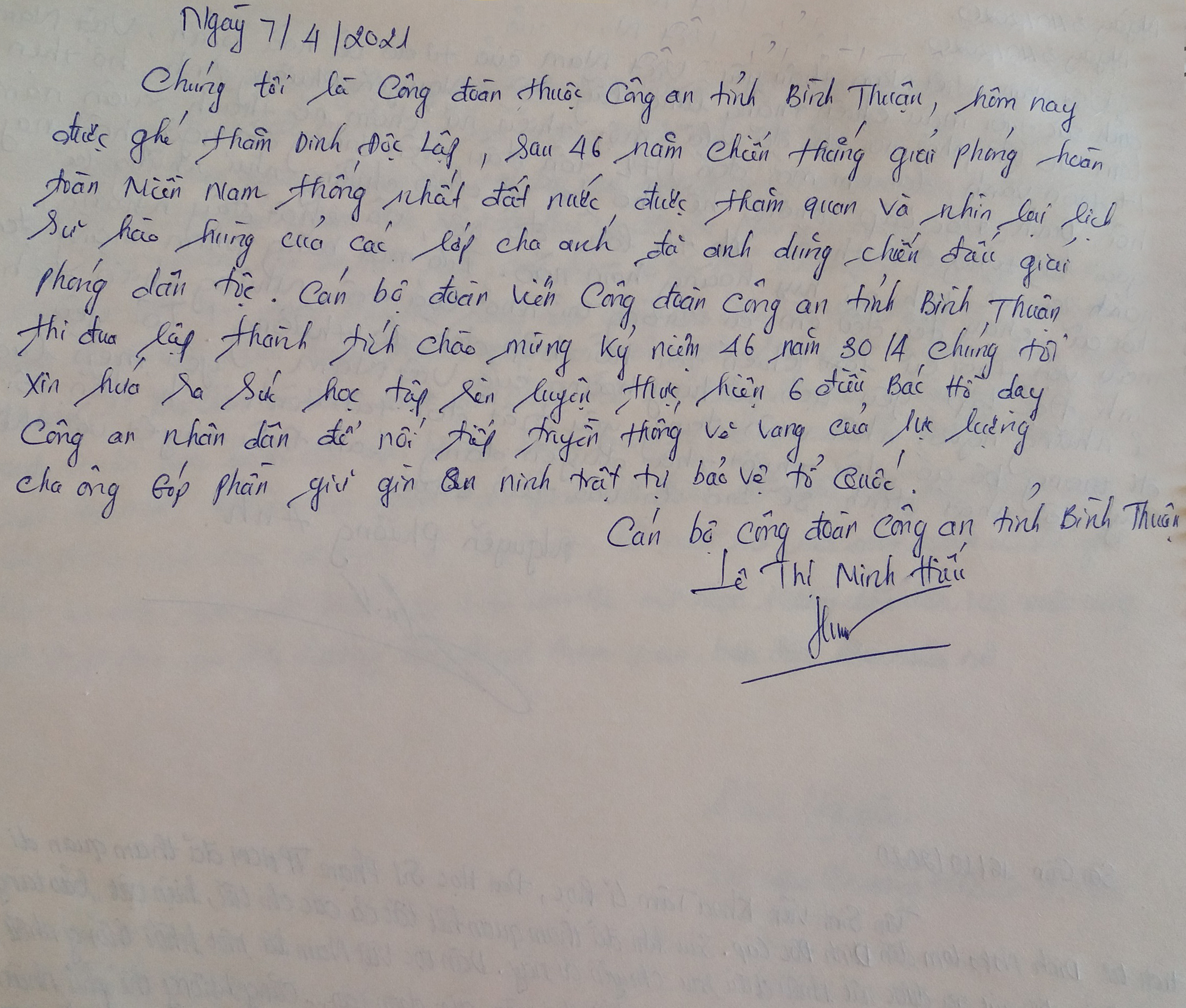 Lê Thị Minh Hiếu, Cán bộ công đoàn công an tỉnh Bình Thuận.