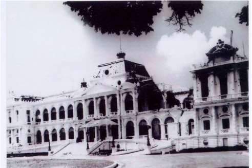 Bằng chiến dịch Hồ Chí Minh lịch sử, 10h45’ ngày 30/4/1975, xe tăng mang số hiệu 843 của quân giải phóng thuộc Ðại đội 4, Tiểu đoàn 1, Lữ đoàn xe tăng 203, Quân đoàn 2 dẫn đầu đội hình đã húc nghiêng cổng phụ của Dinh Ðộc Lập, tiếp đó xe tăng mang số hiệu 390 đã húc tung cổng chính tiến thẳng vào Dinh. 11h30’ cùng ngày, Trung úy Bùi Quang Thận – Ðại đội trưởng chỉ huy xe tăng 843 đã hạ lá cờ 3 sọc xuống, kéo lá cờ mặt trận dân tộc giải phóng miền Nam Việt Nam lên. Cờ phấp phới tung bay trên nóc Dinh, kết thúc 30 năm chiến tranh gian khổ và anh dũng của dân tộc Việt Nam. Cũng chính vào giờ phút này, Tổng thống cuối cùng của chế độ Việt Nam Cộng hòa là Dương Văn Minh cùng toàn bộ nội các của chính quyền Sài Gòn phải tuyên bố đầu hàng vô điều kiện chính quyền cách mạng. Dưới sự lãnh đạo của Ðảng Cộng sản Việt Nam, quân và dân ta đã thực hiện được ý nguyện của Chủ tịch Hồ Chí Minh: Nhân dân 2 miền Nam – Bắc sum họp một nhà. Tinh thần và ý chí của nhân dân Việt Nam là độc lập dân tộc và thống nhất đất nước đã toàn thắng.