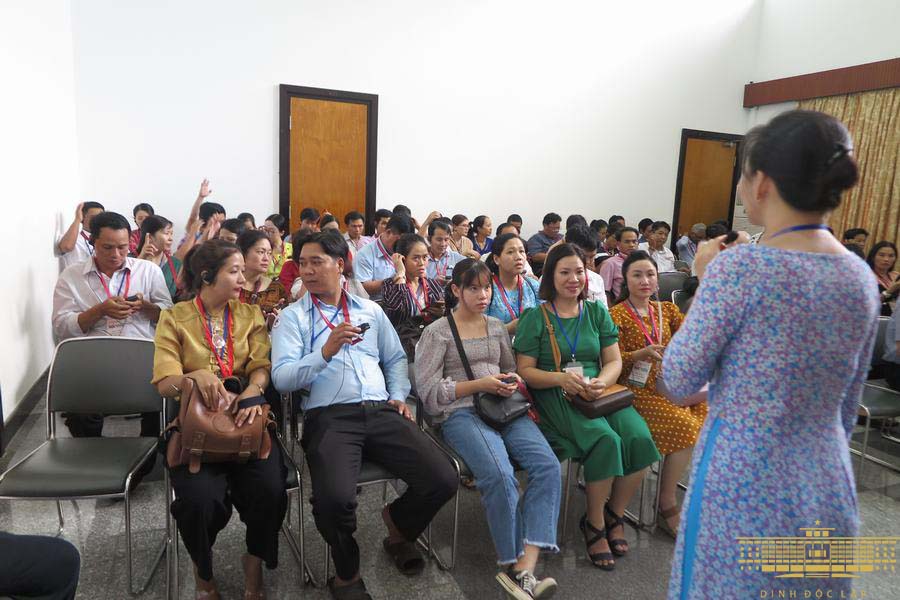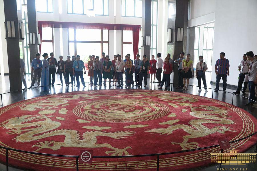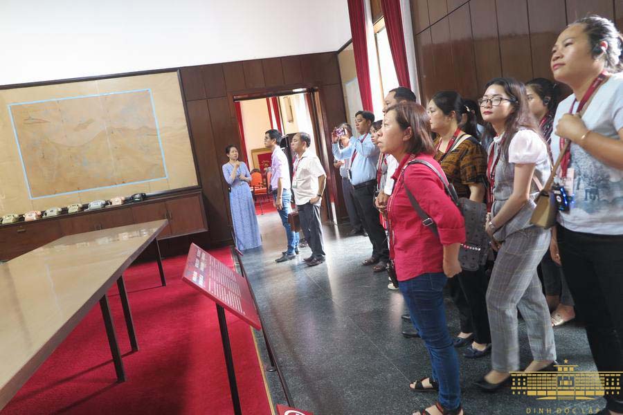 Đoàn tham quan bên trong Di tích Dinh Độc Lập