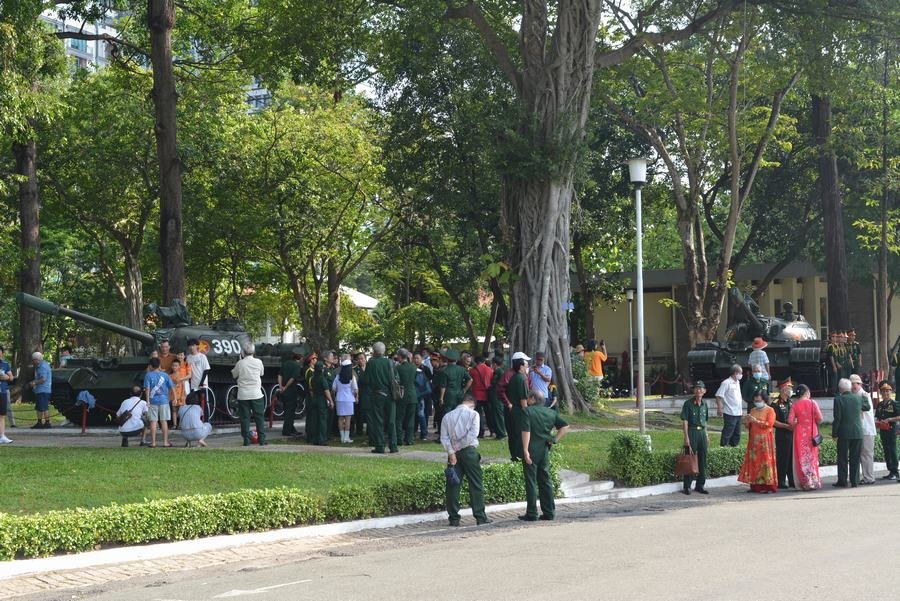 Hình ảnh dưới đây là đoàn Cựu chiến binh Bình – Trị – Thiên – Lào, Sư đoàn 325 tại TPHCM đã đến tham quan Di tích lịch sử Dinh Độc Lập, sáng ngày 30/4/2021.