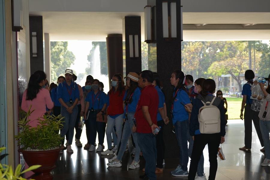 Hình ảnh đoàn tham quan tại Di tích lịch sử Dinh Độc Lập