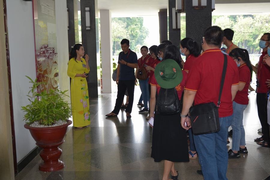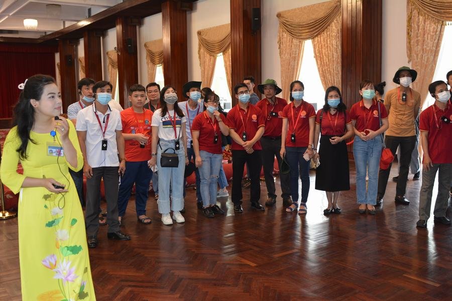 Hình ảnh Thuyết minh viên đưa đoàn đi tham quan Di tích lịch sử Dinh Độc Lập