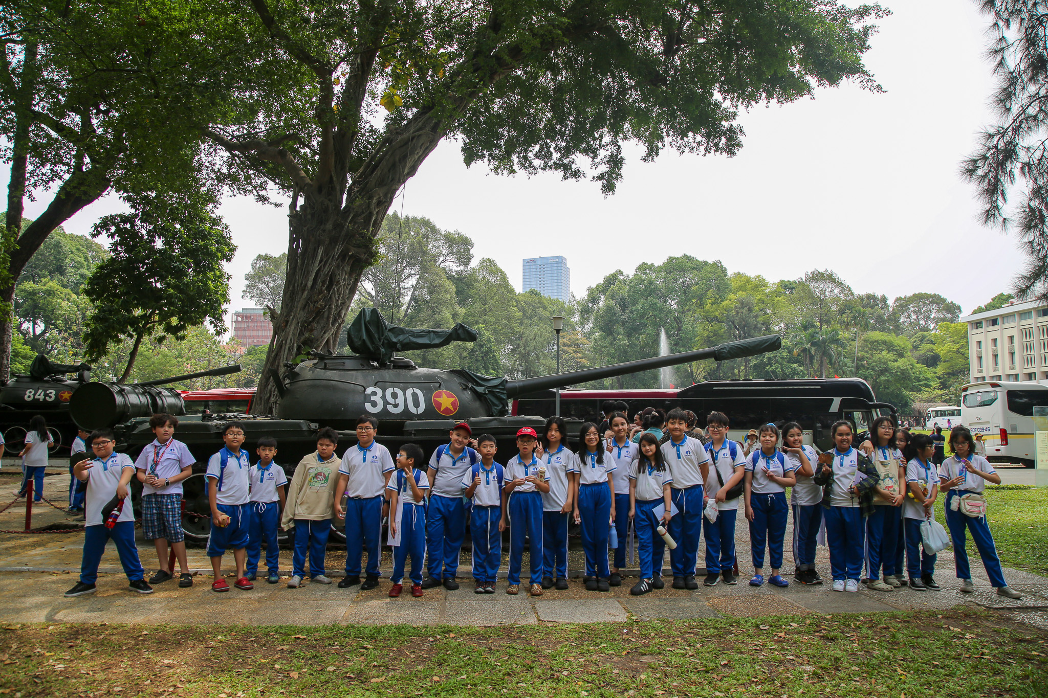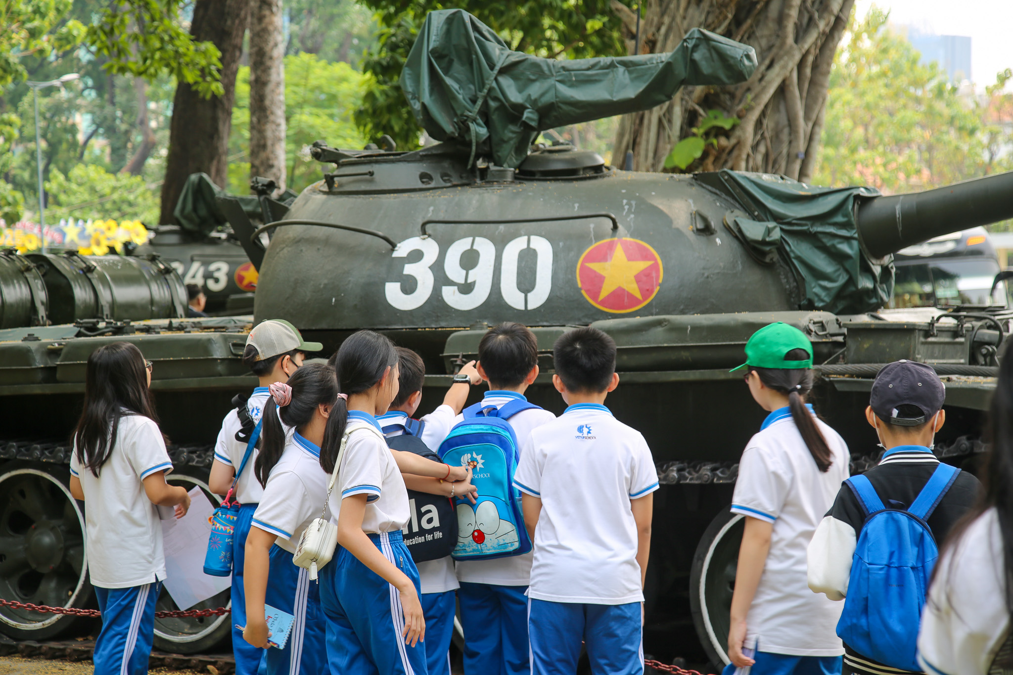 Each session lasts 90 minutes and features exciting activities such as painting and solving questions related to the historical events of April 30, 1975. The students also had the chance to discover and learn about the two historical tanks, Tank 390 and Tank 843, located in the Palace garden, with introductions provided by the education staff.