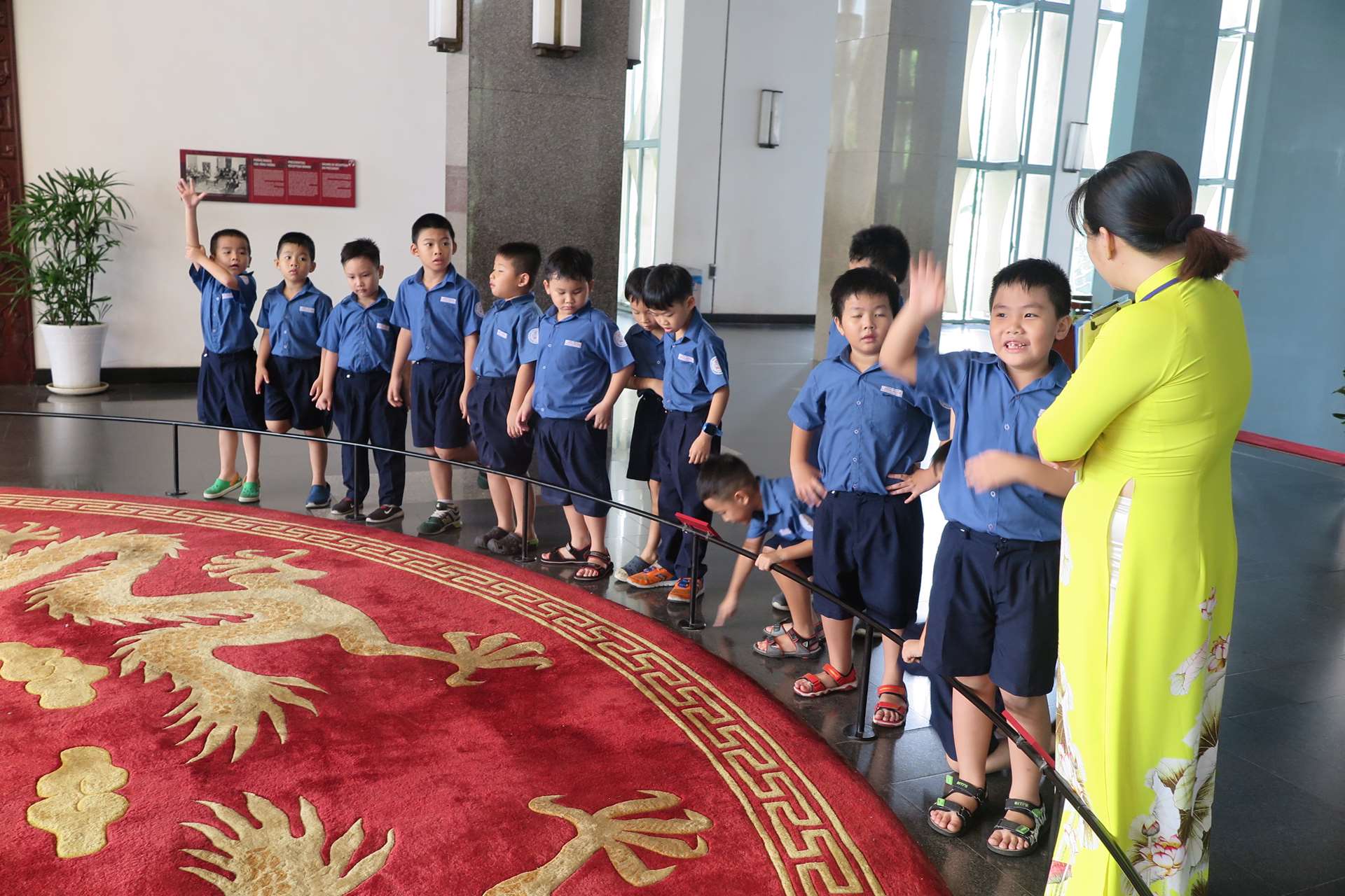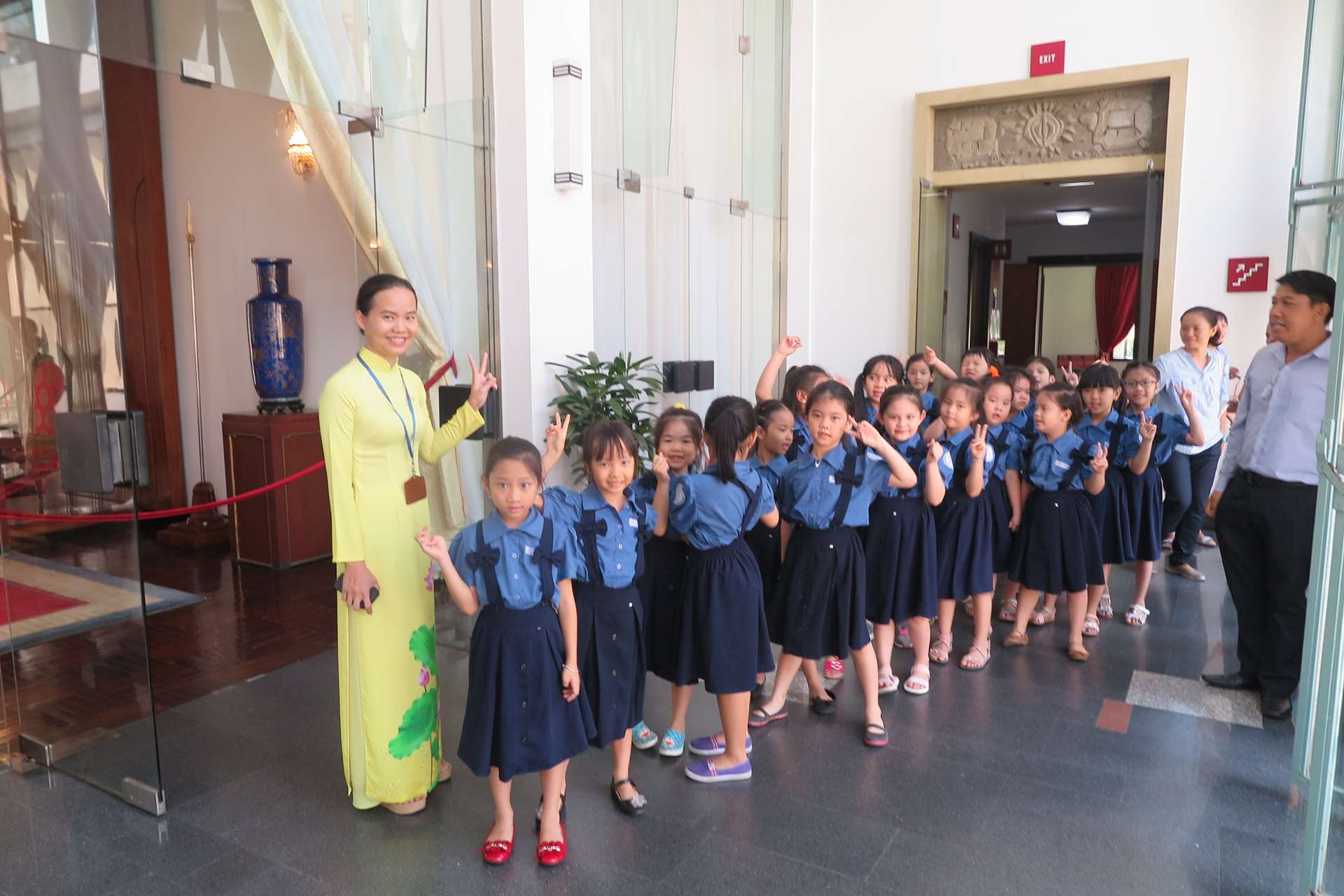 From April 22nd to 26th, 2019, 258 the 1st grade pupils of Hoa Binh primary school, District 1, Ho Chi Minh City had the extracurricular activities to learn the features of “Dragon” which decorated inside the Independence Palace historical relic.