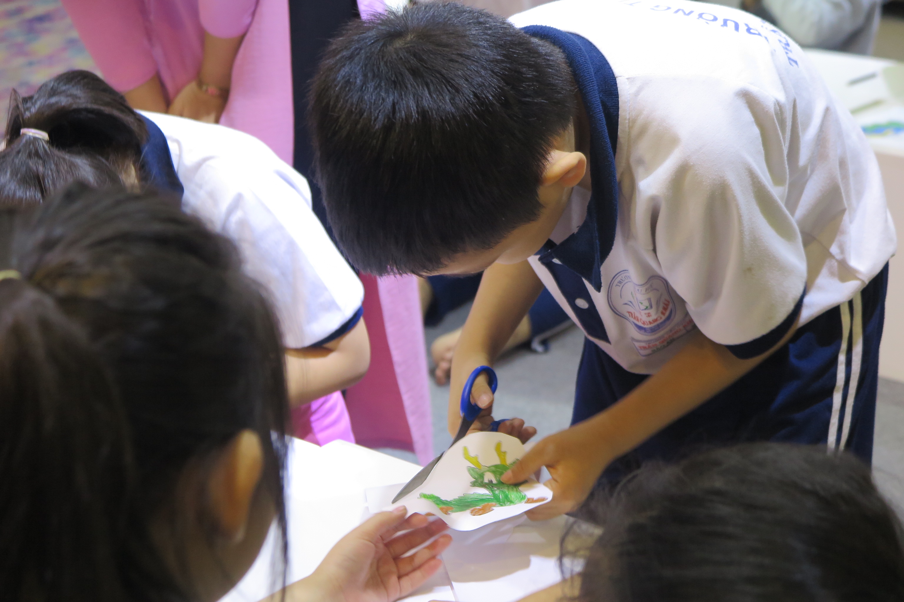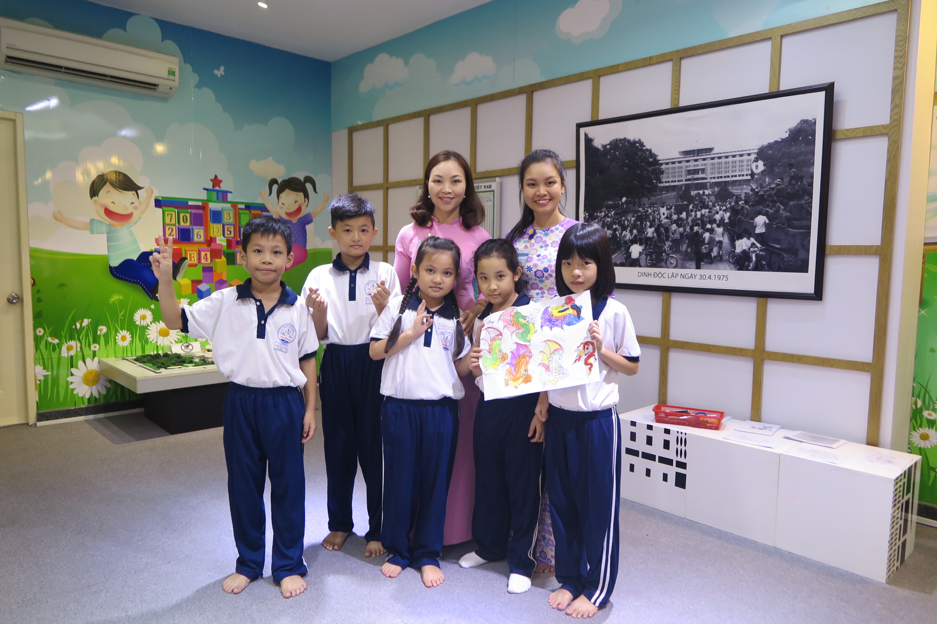 These first grades of its school experienced co-ordinatedly in Vietnamese, Arts and Crafts, Fine Arts subject with the theme “Two dragons fighting for the pearl” from the features of “dragon” which decorated inside Independence Palace historical relic.