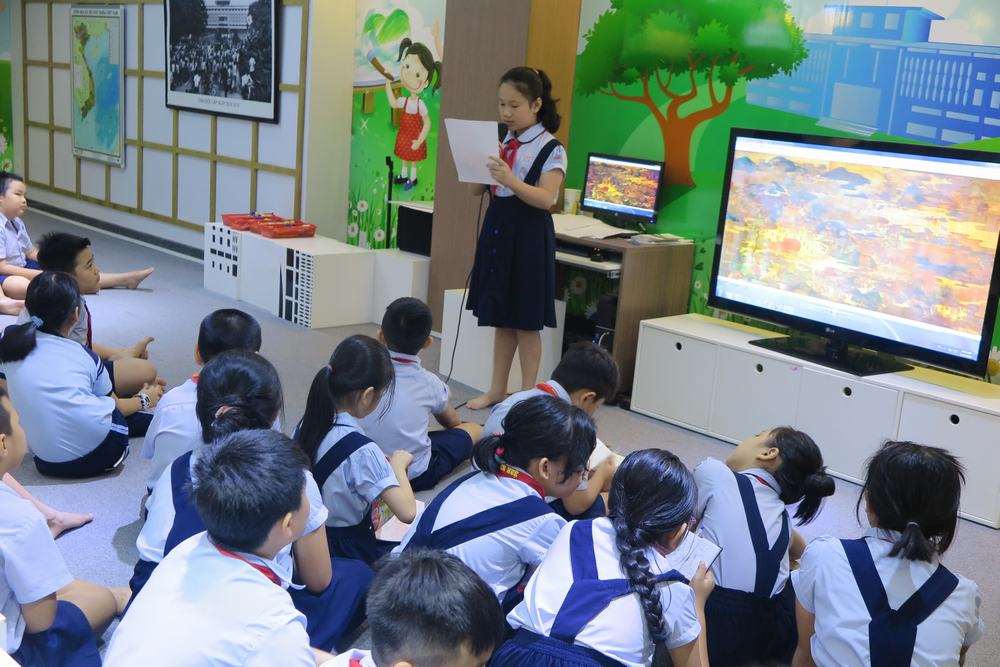 On April 16th, 2019, at the Kids’ Club, Unification Hall, 66 the 4th grade pupils of Nguyen Hue primary school, District 1, Ho Chi Minh City had the extracurricular activities to review a historical subject “Literature and Science in the Post-Le Dynasty from the lacquer painting titled “Famous Vietnamese Manifesto” in Independence Palace historical relic.