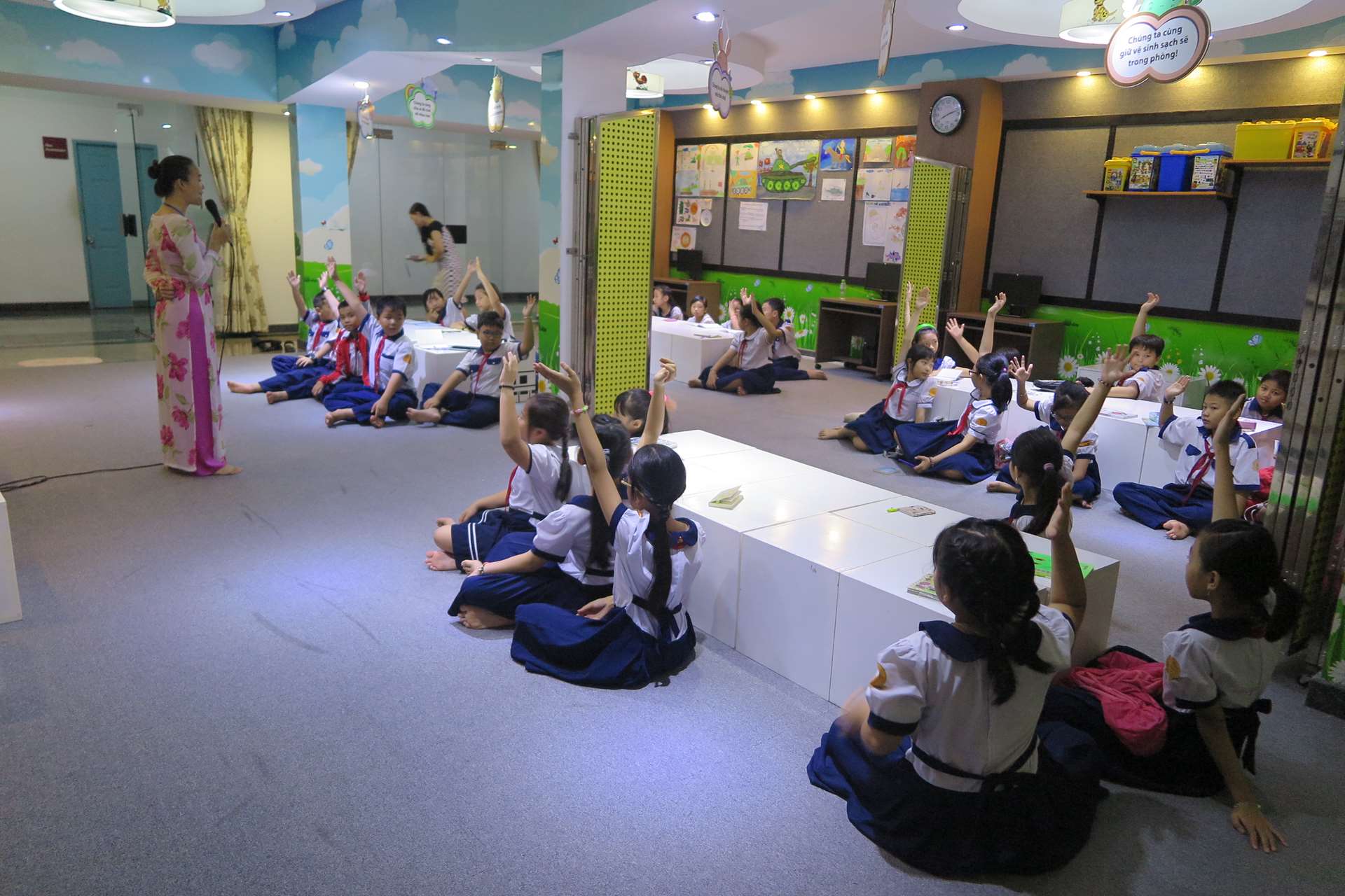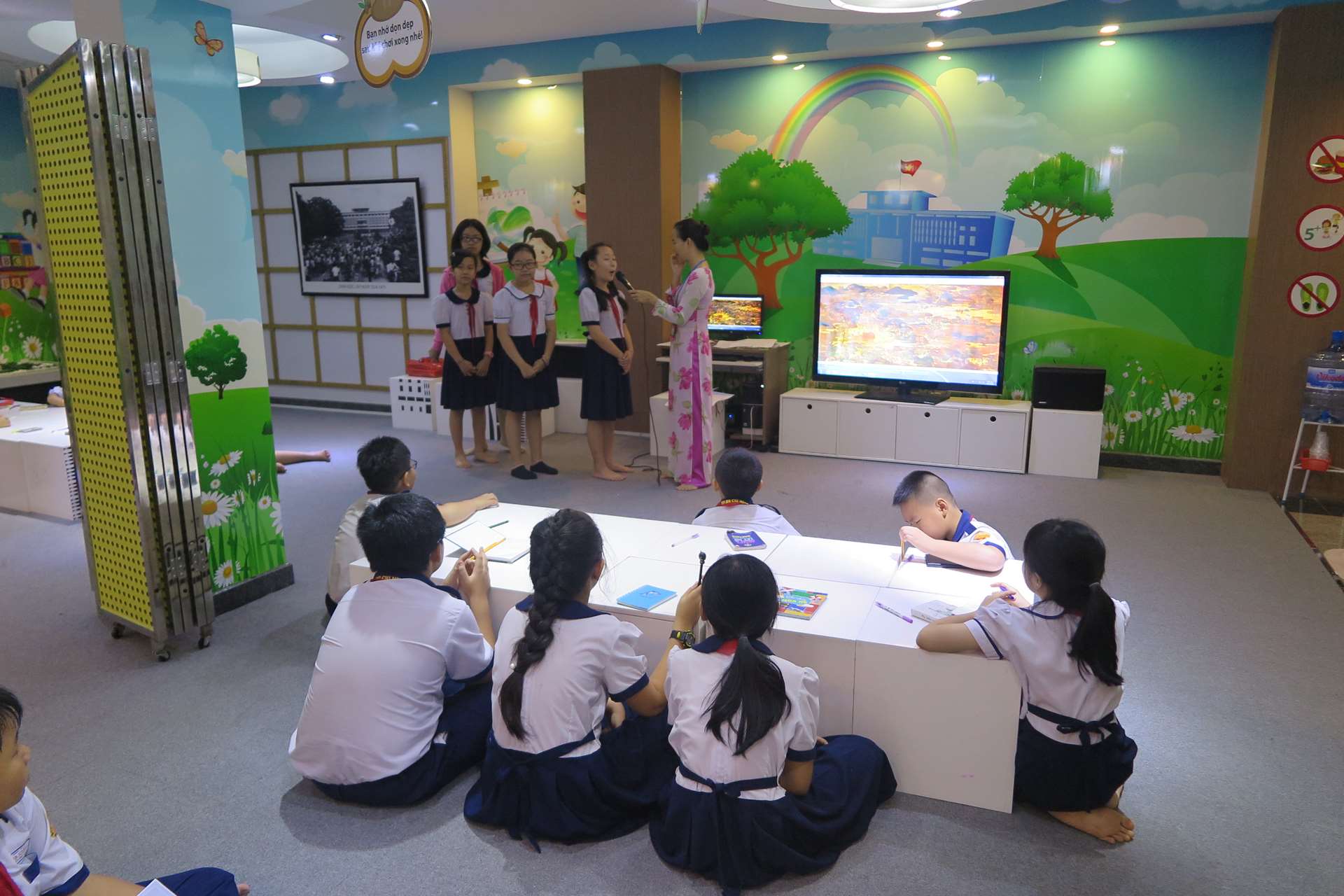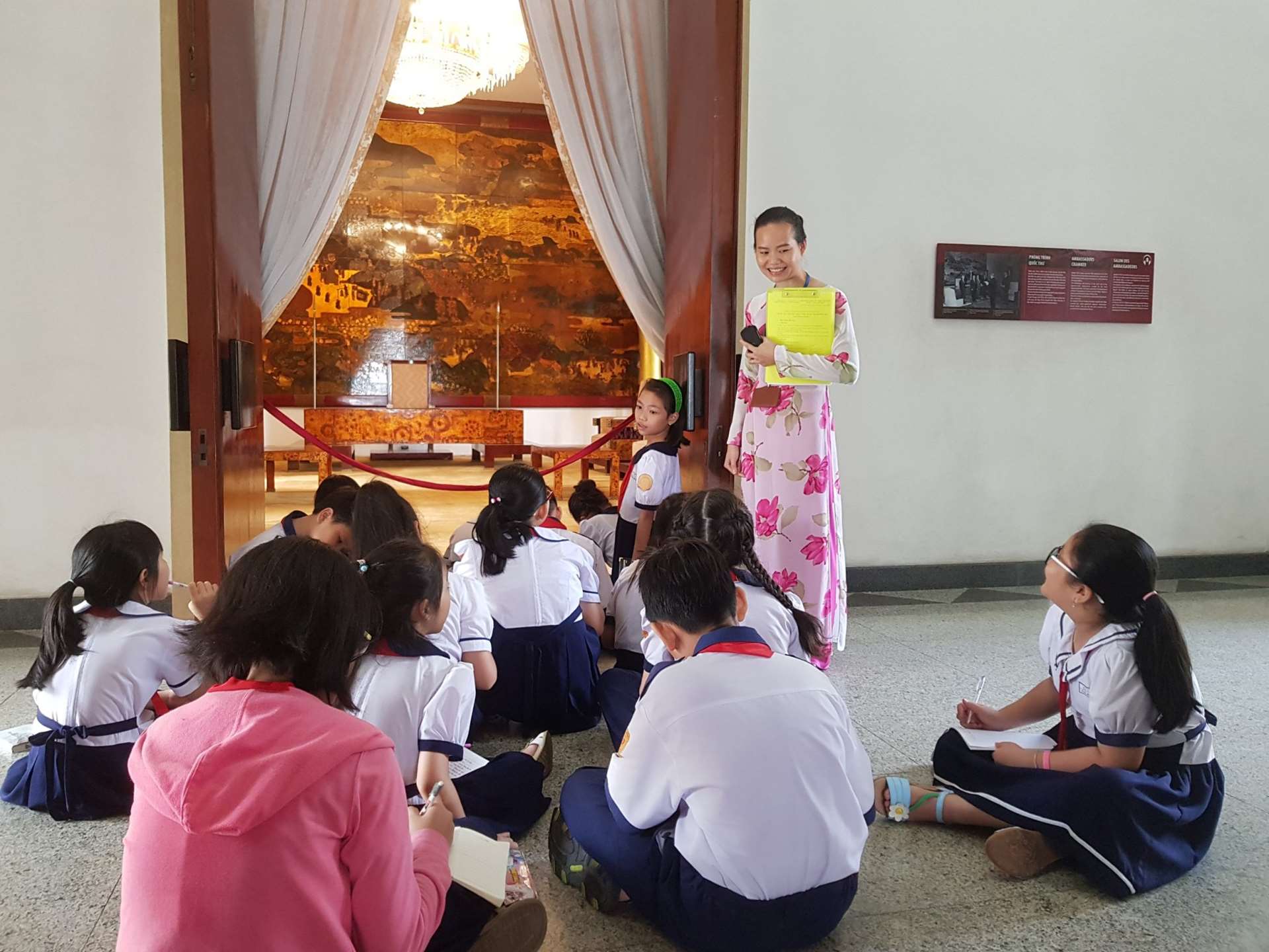 On the morning of April 4th, 2019, 30 the 4th grade pupils of Ta Uyen primary school, Nha Be district, Ho Chi Minh City had the extracurricular activities to review a historical subject “School of the Post-Le dynasty” from the lacquer painting titled “Famous Vietnamese Manifesto” in Independence Palace historical relic.