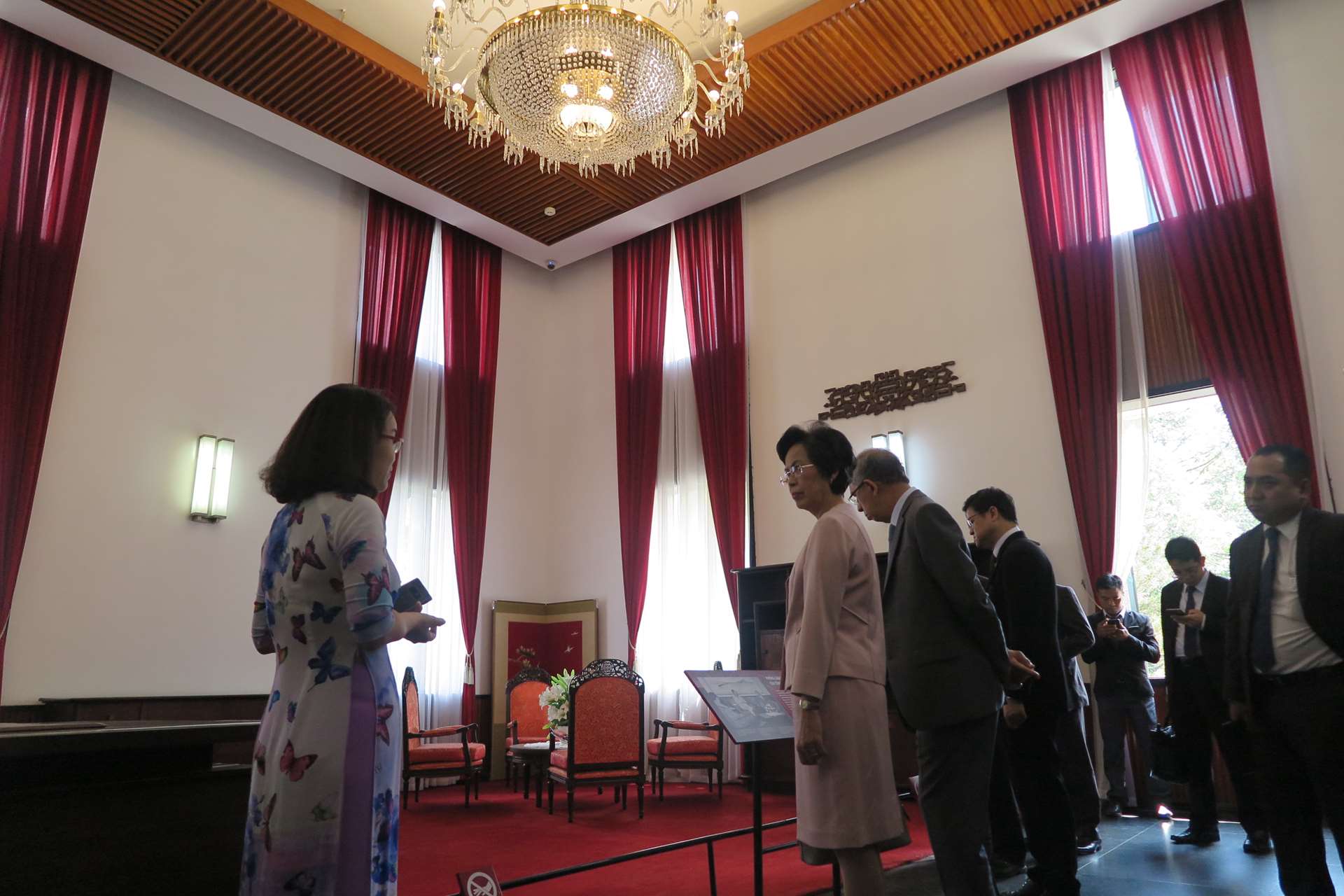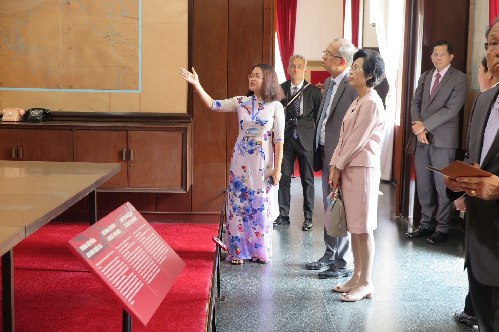Interpreter guides the delegation inside Independence Palace