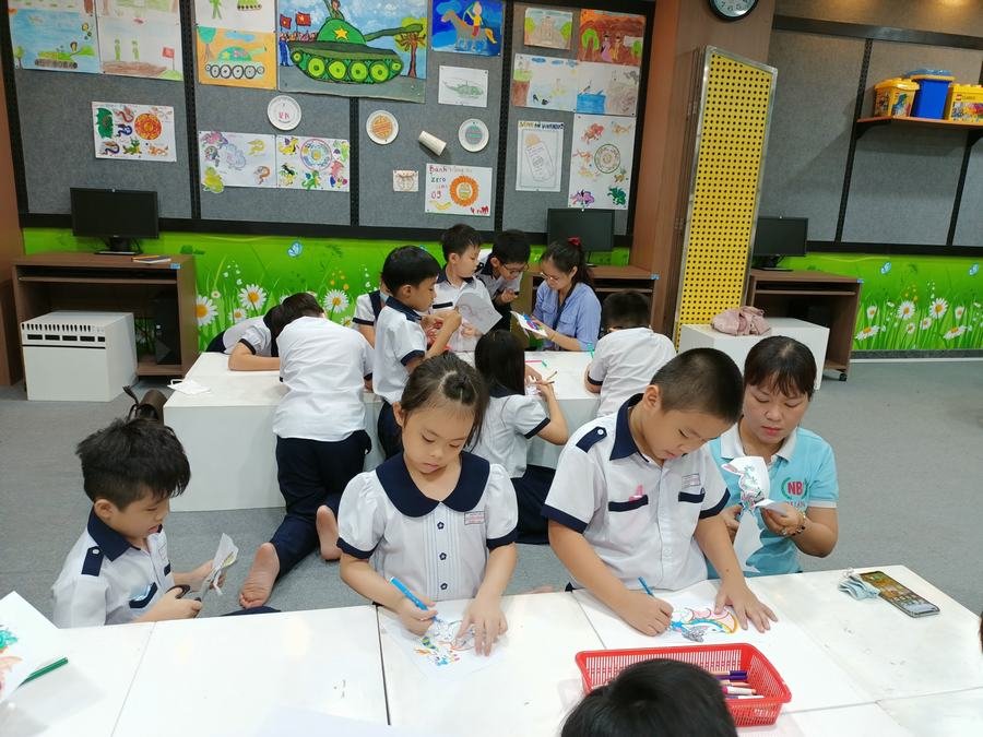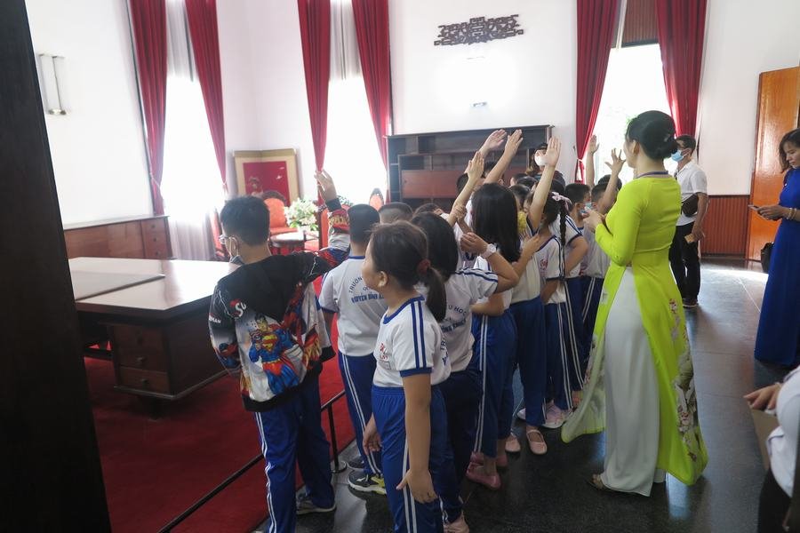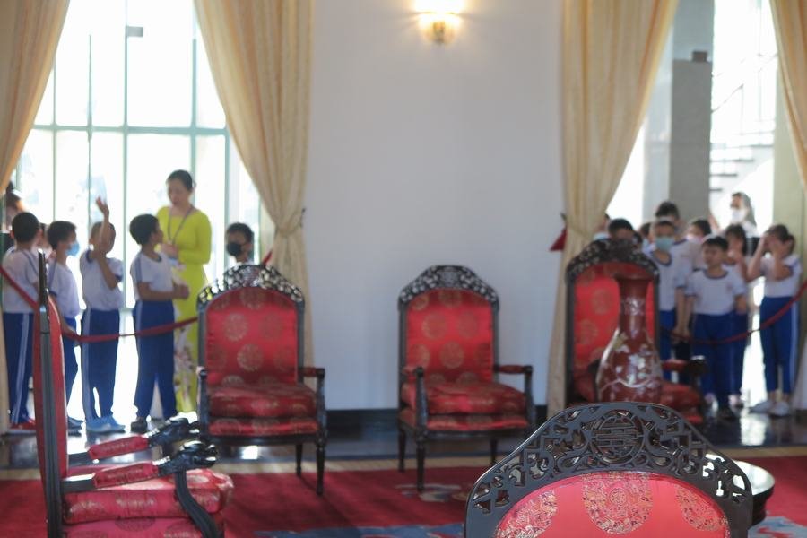 Gần 300 học sinh khối Lớp 2 trường Tiểu học Nguyễn Bỉnh Khiêm, Quận I, TPHCM cùng quan sát các họa tiết “con rồng” tại Di tích lịch sử Dinh Độc Lập đã kết hợp với bài “Trang trí họa tiết” của môn Mỹ thuật khi trải nghiệm thực tế chương trình “Khám phá Di sản” tại Câu lạc bộ trẻ em, sáng ngày 12-16/4/2021.