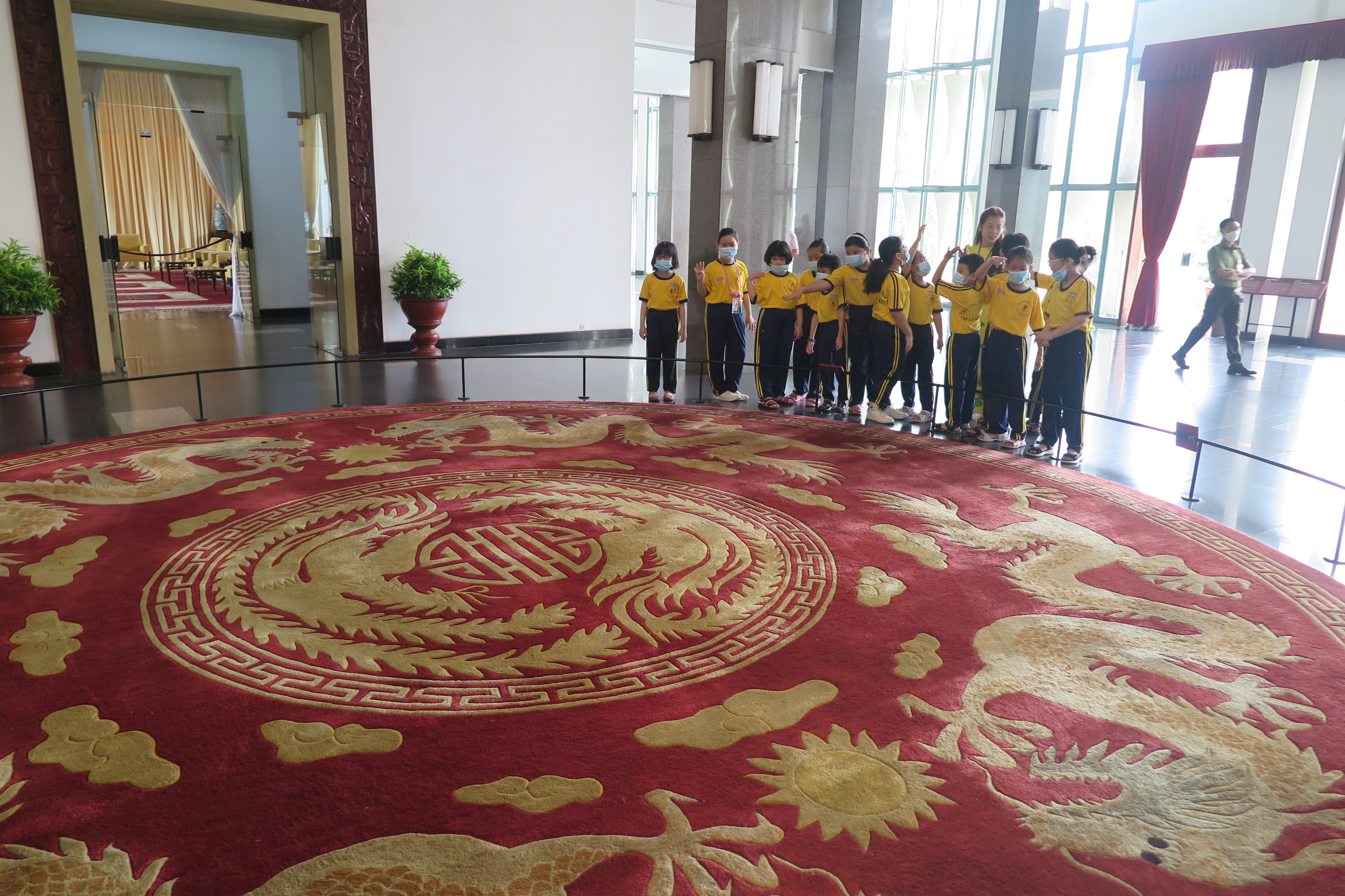 Dưới đây là hình ảnh các em học sinh khối lớp 3 trường Tiểu học Khai Minh, Quận 1, Thành phố Hồ Chí Minh đang tìm hiểu về họa tiết con rồng trang trí trong Di tích lịch sử Dinh Độc Lập, một chủ đề trong chương trình Khám phá Di sản.